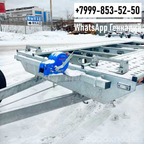 Специализированный двухосный прицеп с оцинкованной конструкцией от компании «МЗСА» для перевозки автомобилей. Представляет собой оцинкованную раму со стальным настилом, размер платформы 5100*2200 мм. Для заезда авто модель комплектуется оцинкованными стальными аппарелями для заезда, опорными стойками и оборудуется специальными отсеками для их перевозки. Прицеп имеет рессорную подвеску и тормоз наката.